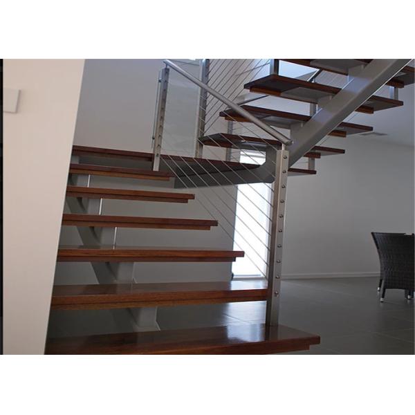 Flexibility Modern Steel Staircase With Wood Treads , Customized Design Images |